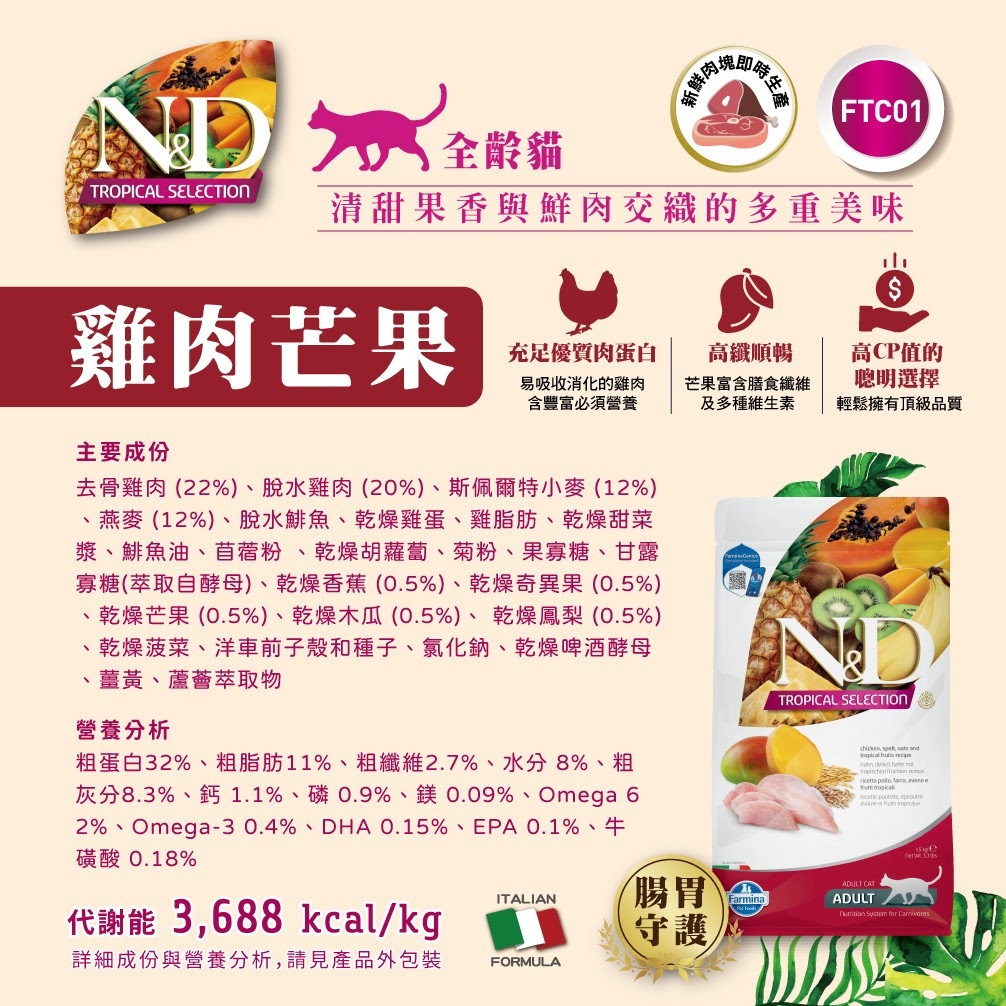 FTC-1 N&D天然熱帶水果系列-全齡貓-雞肉芒果 5KG