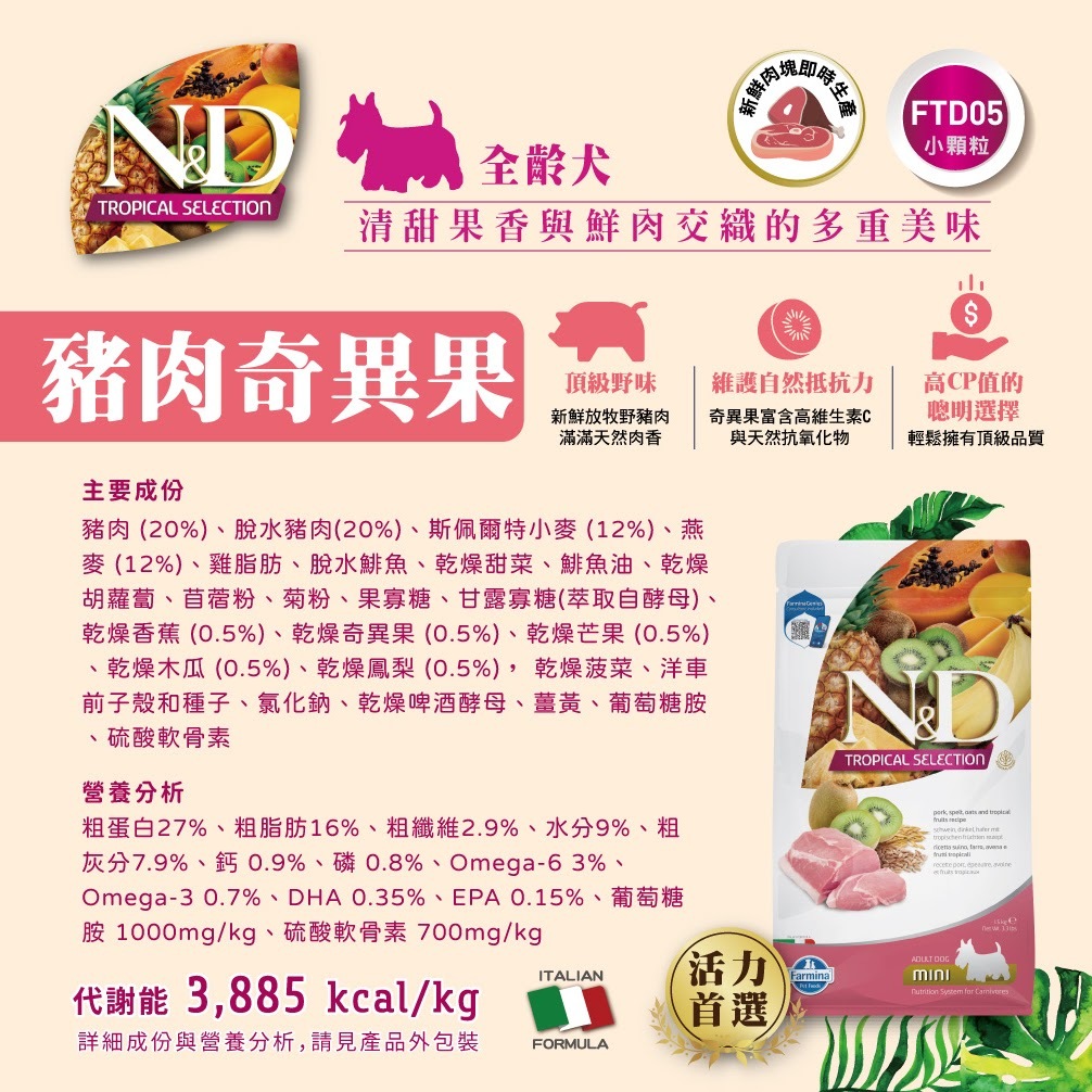 FTD-5 N&D天然熱帶水果系列-全齡犬-豬肉奇異果-小顆粒 1.5KG