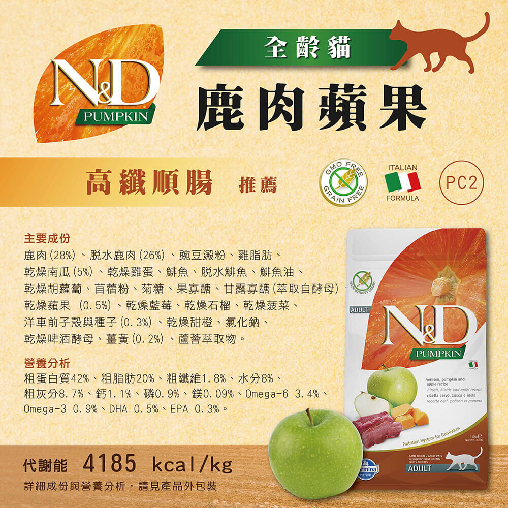 PC-2 N&D 天然南瓜無穀系列 全齡貓 鹿肉蘋果 10KG