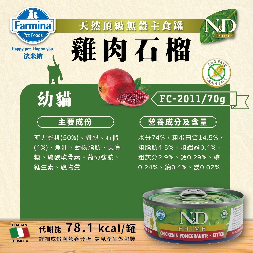 FC-2 天然頂級無穀主食貓罐 FC-2011 幼貓-雞肉石榴 70G